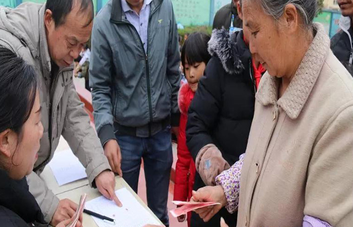 貧困生家長領(lǐng)取青島鑫江慈善基金會貧困生助學(xué)金