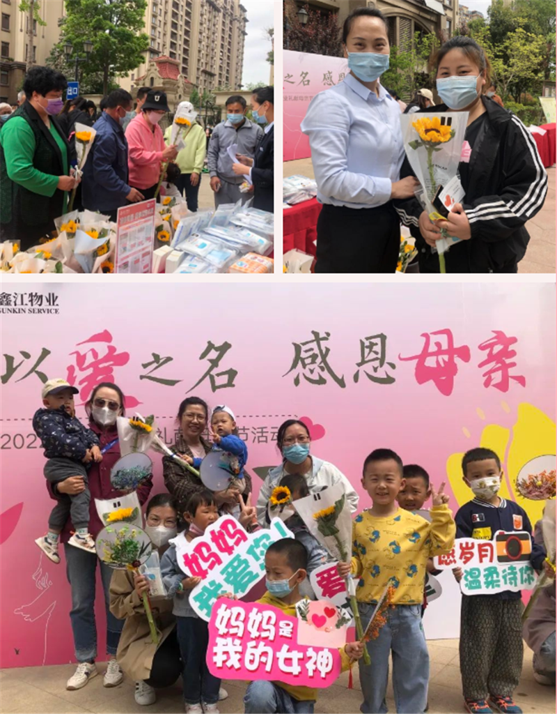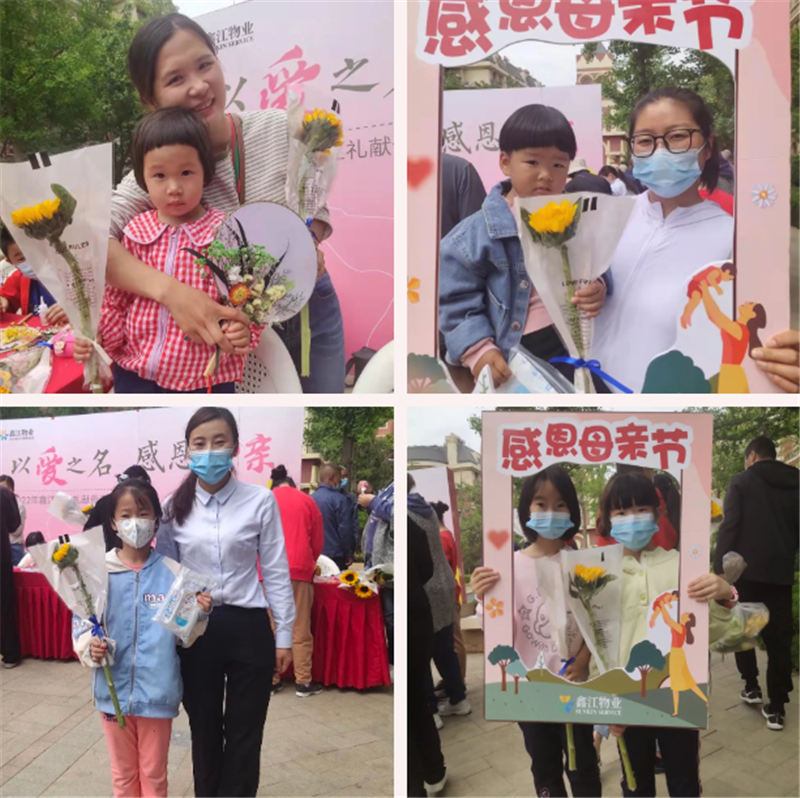 向日葵的花語是“沉默的愛”。鑫江物業為媽媽們準備了愛意濃濃的向日葵,向媽媽們訴說愛意,感恩她們的無悔付出。