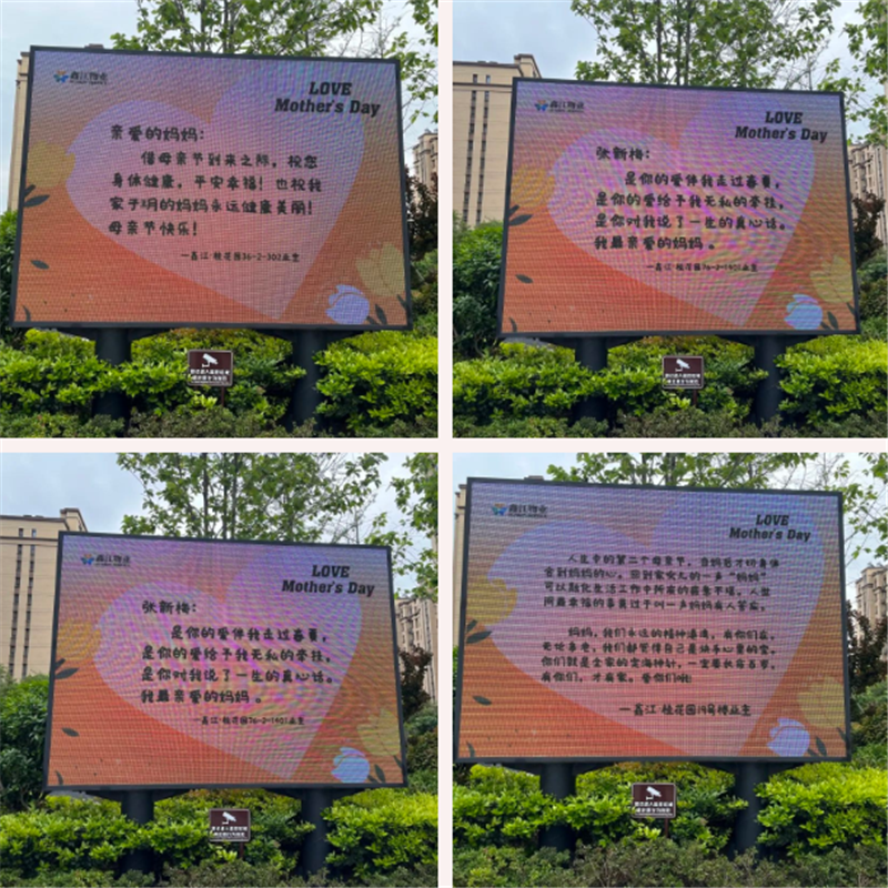 換個方式向媽媽告白吧!母親節當日,物業LED屏化身為“表白墻”,把您想對母親說的話,向媽媽們表達你的愛吧!