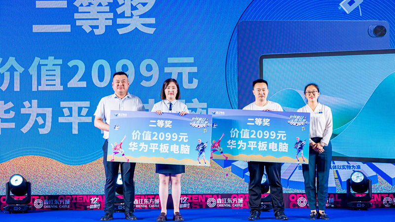 現場的抽獎環節更是把活動現場的氣氛推向高潮,鑫江東方城5000元購物卡、平板電腦、洗地機等多輪獎品紛紛被幸運業主收入囊中,現場驚喜的歡呼聲不斷。